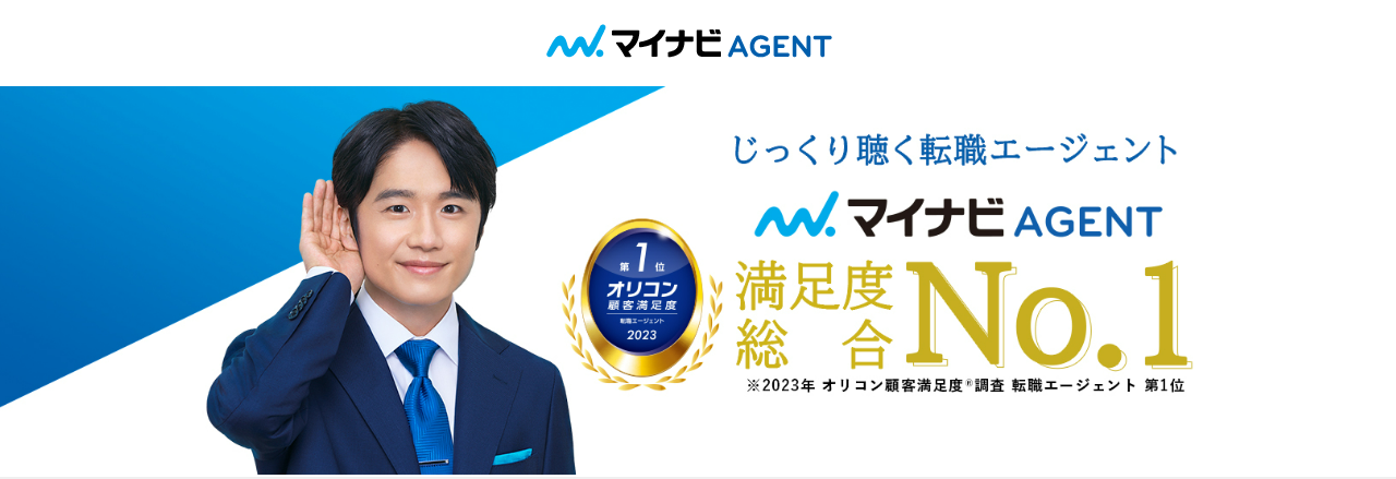 マイナビAGENTは、業界最大級の転職実績を誇り、顧客満足度No.1(2023年オリコン顧客満足度Ⓡ調査 転職エージェント 第1位)の転職サービスです。