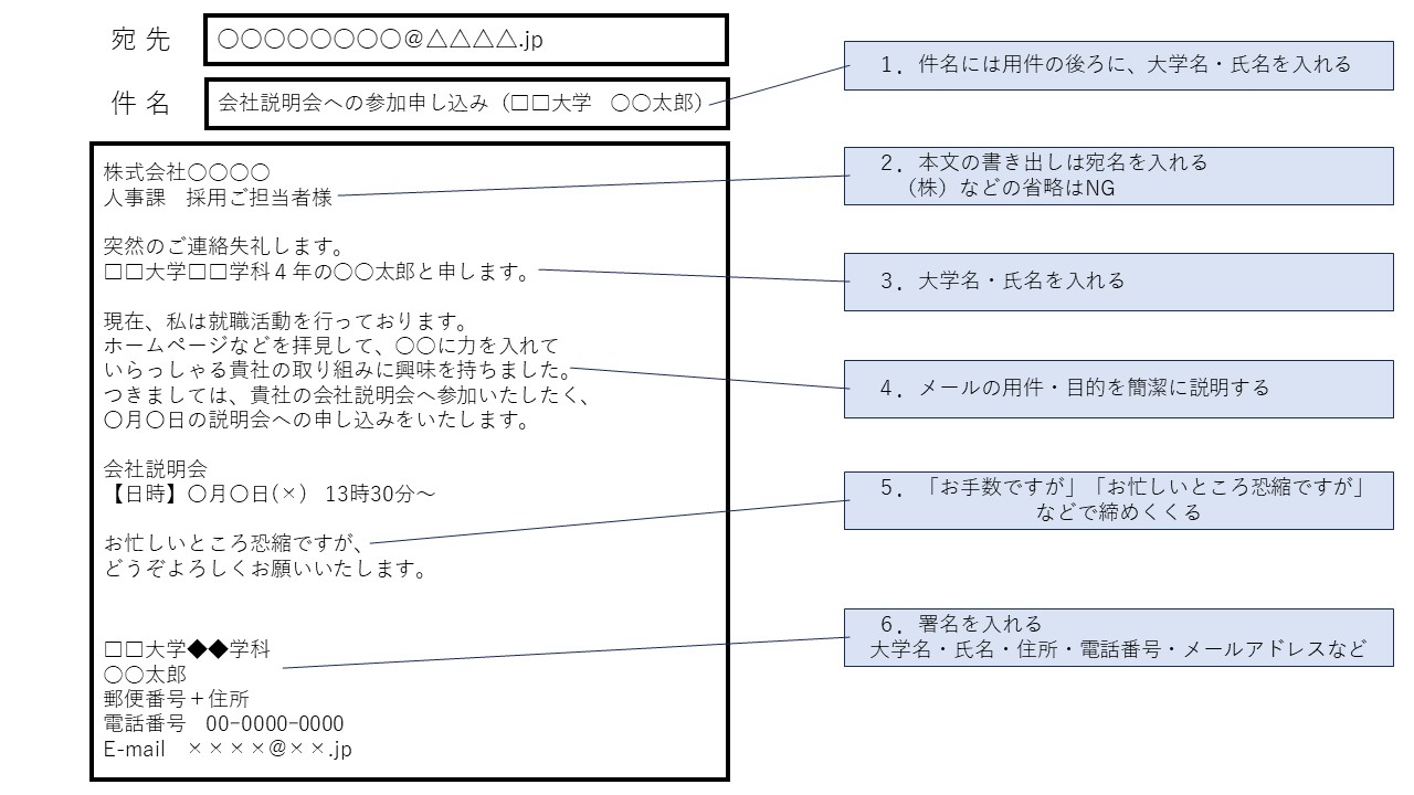 例:会社説明会への申し込み(○○大学 ○○太郎)